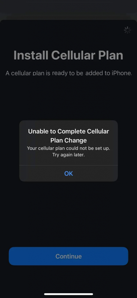 Ten komunikat pojawia się, gdy instalacja karty eSIM nie powiedzie się z kilku powodów, które opisujemy poniżej: